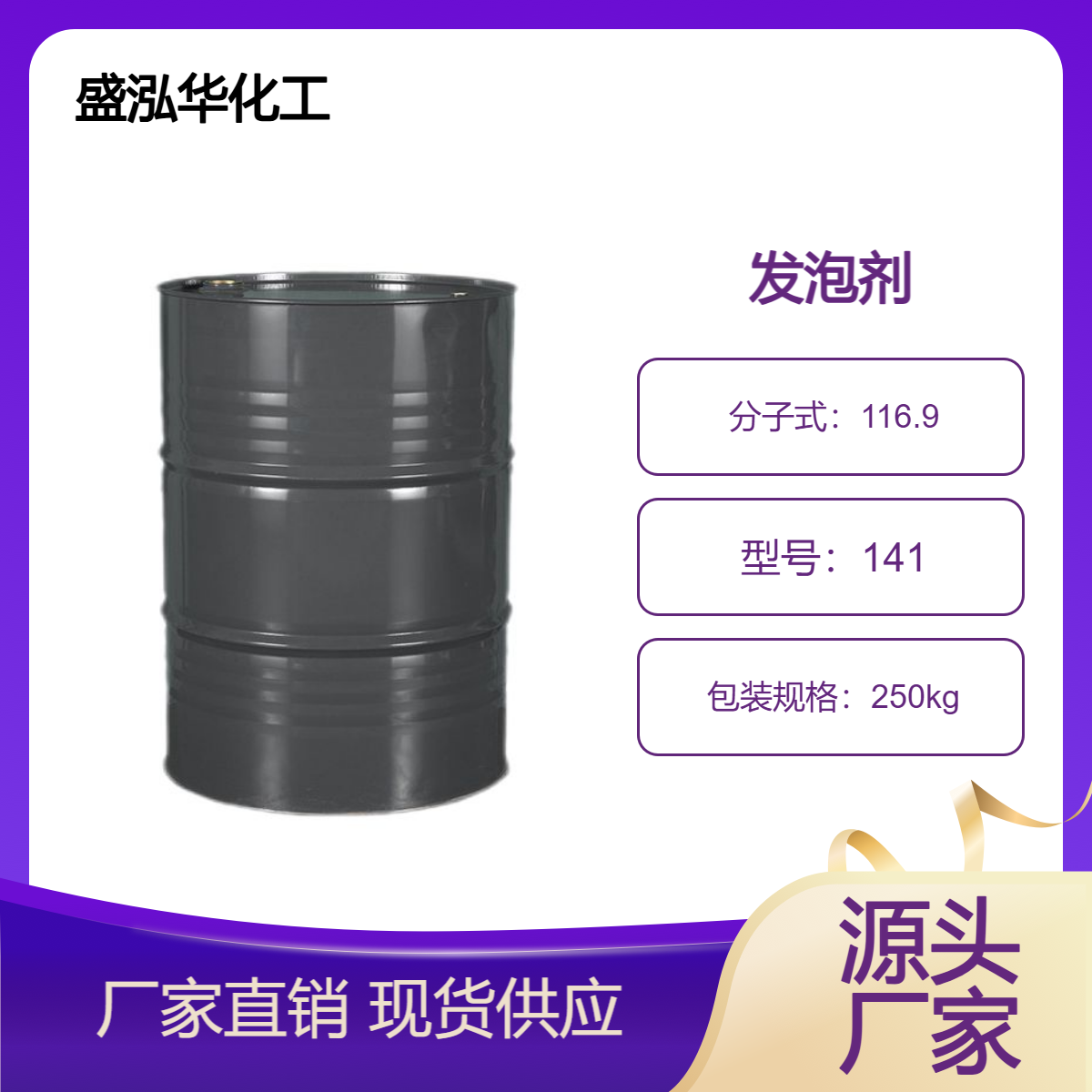 盛泓华化工牌的发泡剂盛泓华化工化学式CCl2FCH3桶装200L沸点32产品:估价:5.00,规格:160,产品系列编号:160 发布日期:2025-5-23